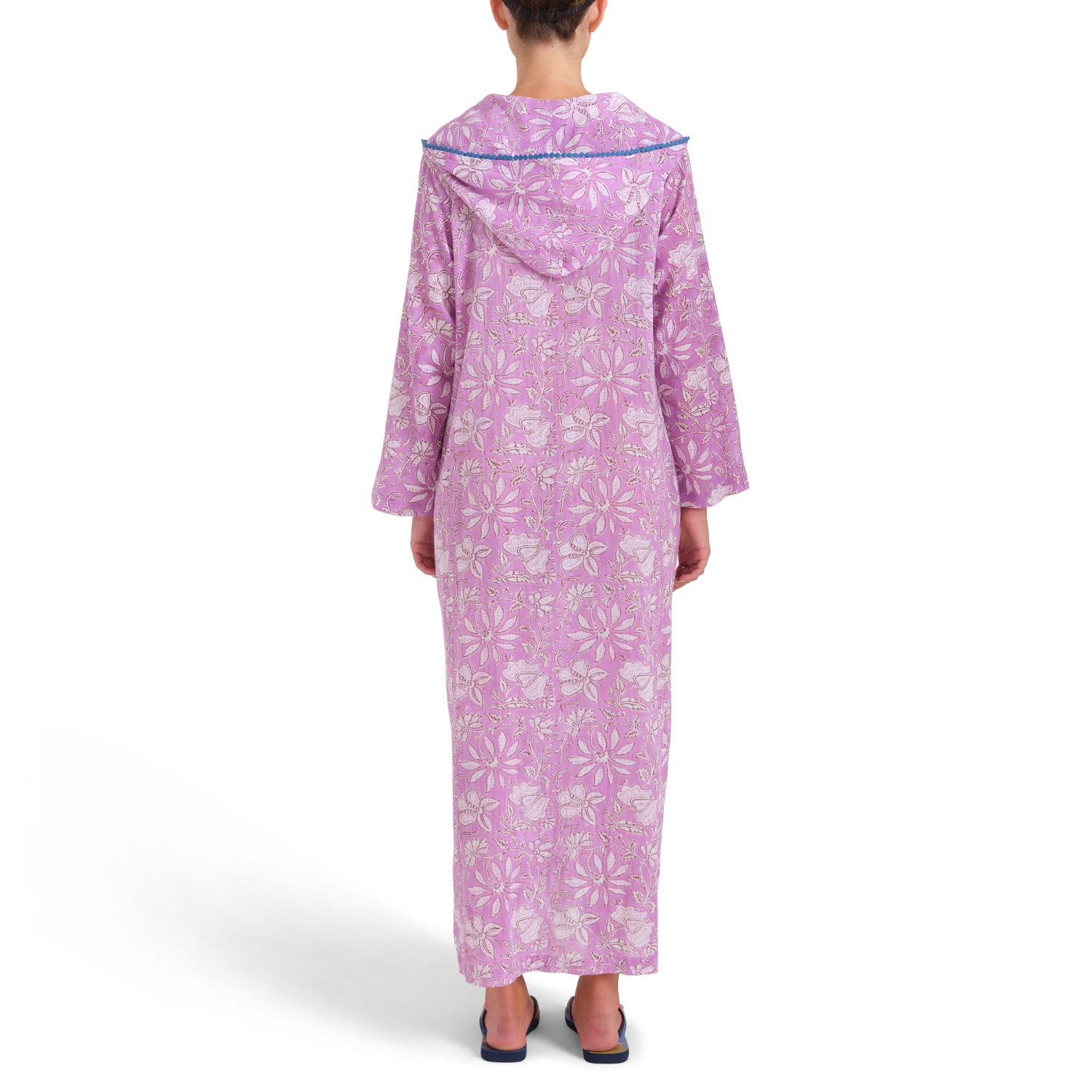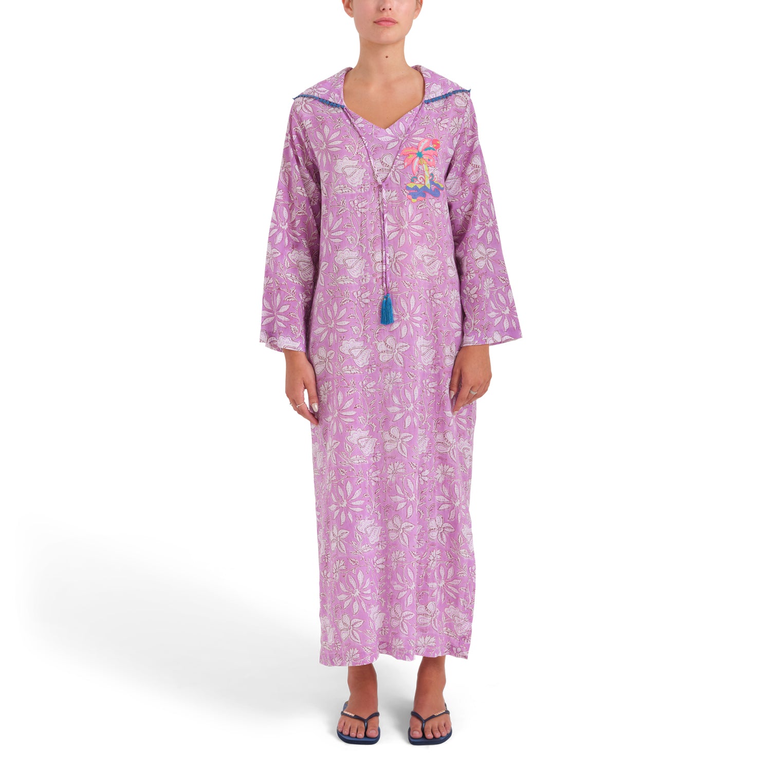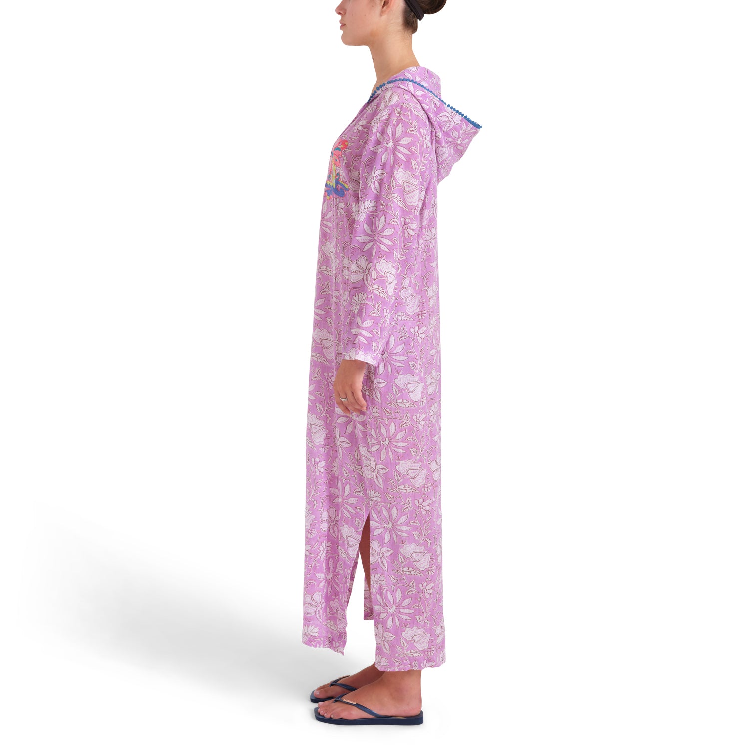 The iconic Tiger and the Monkey hooded kaftan reimagined in an impossibly soft cotton block print with colorful palm tree embroidery and matching tassels. Wear yours to the beach, the market or wherever your adventures take you. The Diane kaftan is very lightweight 100% cotton, hand printed and hand embroidered with coordinating silk tassels, delicate cotton trimmed hood and hidden pockets, designed for you by us for the ultimate in comfortable dressing no matter life takes you.
