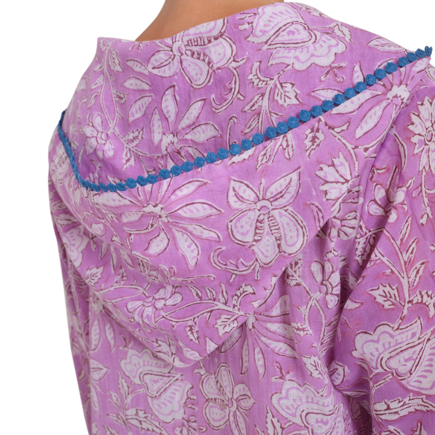 This garment is crafted from hand printed, hand dyed fabric. Variations in color, design and texture are part of its beauty and are not considered a design flaw.