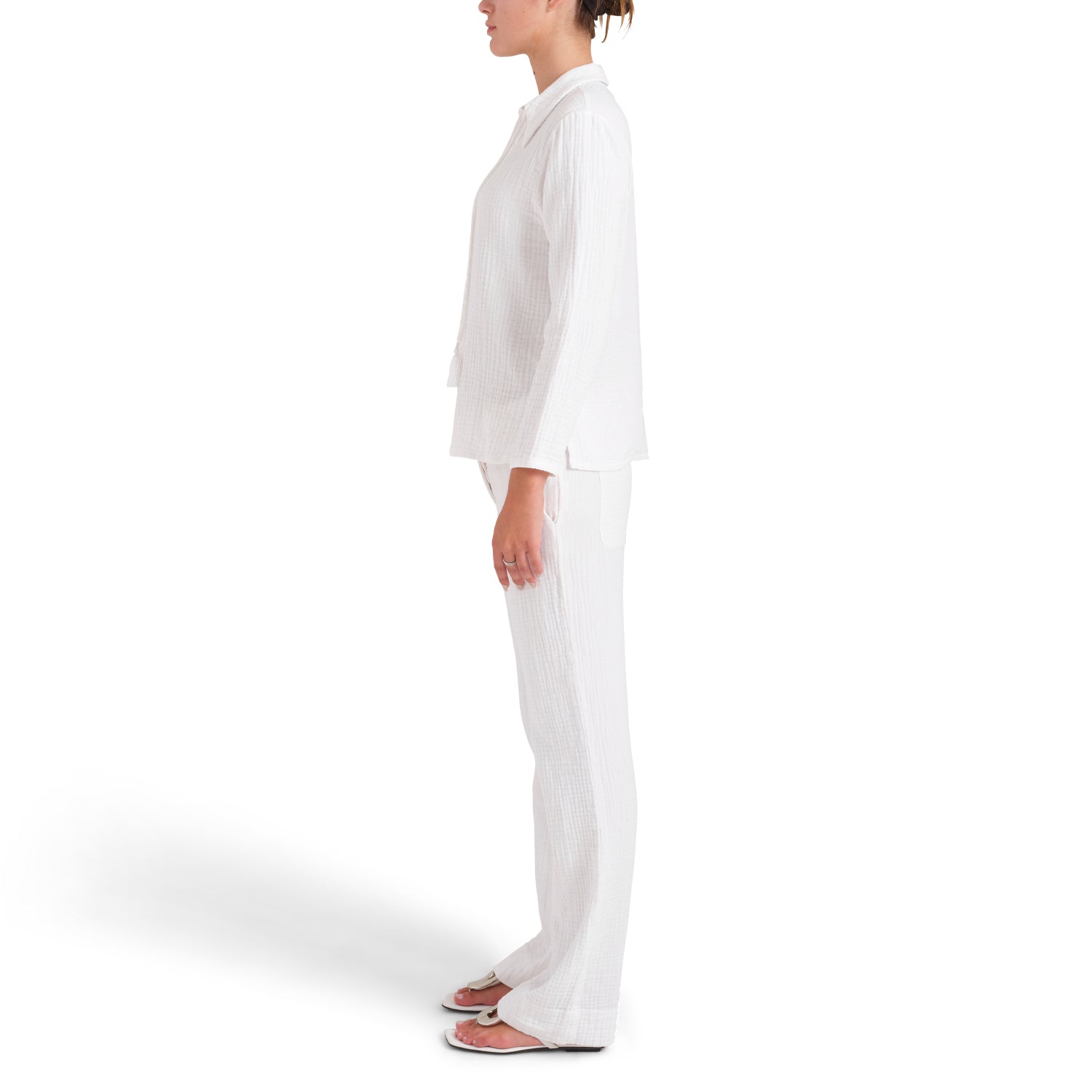 The Debbie In law pant is made from incredibly soft, environmentally considerate 100% BCI (Better Cotton Initiative™) triple cotton gauze from Italy.